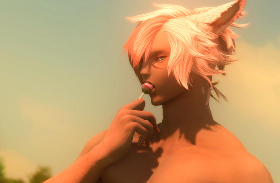 A travelling scammer, merchant and thief, alongside his twin brother Ero'a. Where Ero'a is cold and calculating, Eni'a is flirtatious and charming, never without a lollipop in his mouth.Born in Thanalan, Eni'a was abandoned alongside his twin brother while the pair were young, adapting to living on the streets. Since then the pair have become merchants of sorts, scamming and cheating their ways to the top.Eni'a is the charm of the operation, seducing potential business partners to get whatever he or his brother wants.